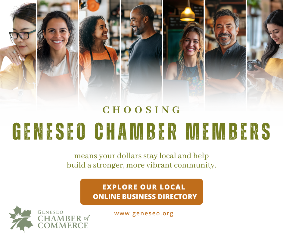 The Geneseo Chamber of Commerce is a not-for-profit, non-governmental organization dedicated to advancing and retaining commerce, industry, agriculture, and quality of life in the City of Geneseo and surrounding area. The Geneseo Chamber works to help Geneseo achieve its fullest potential by providing continuous and effective leadership. Our strength lies in the active involvement of its membership. Both large and small businesses, from virtually every profession, are represented and influence the direction of our organization.