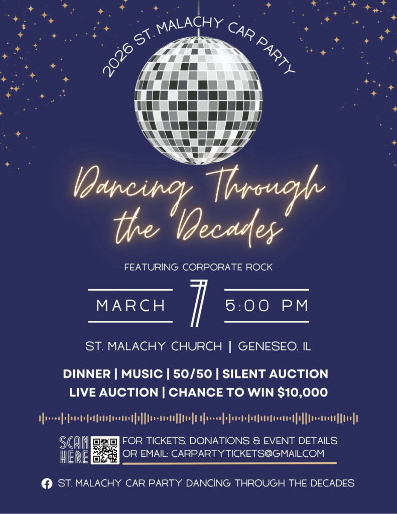 Join us on Saturday, March 7th for the 52nd Annual St. Malachy Car Party — a night of fun, nostalgia, and non-stop entertainment!