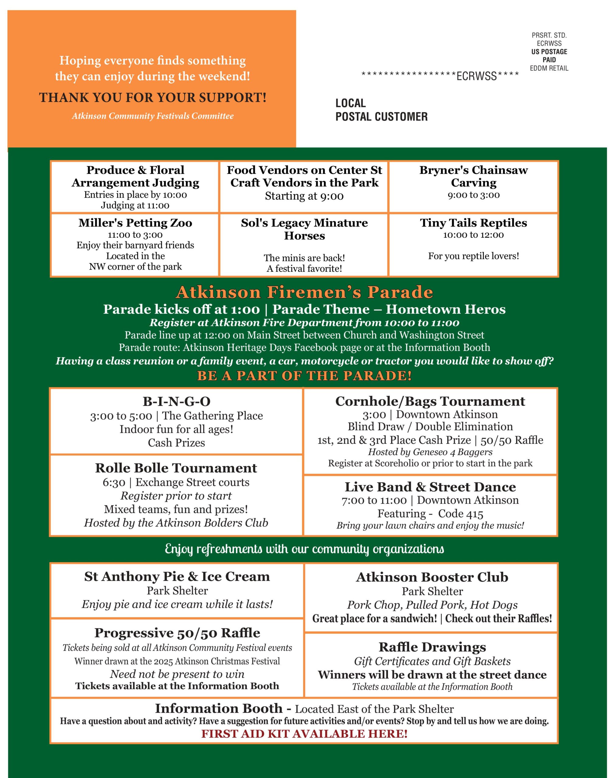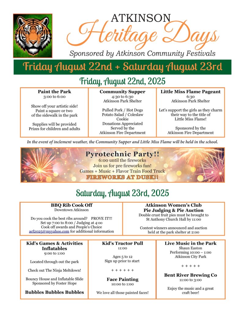 Download a PDF of the 2025 Atkinson Heritage Days Schedule HERE: Atkinson Heritage Days Schedule 2025