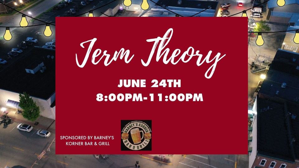 Jerm Theory performing at the Central Bank Pavilion, June 24th, from 8:00pm-11:00pm. Thank you to Barney’s Korner Bar & Grill for sponsoring this concert!
