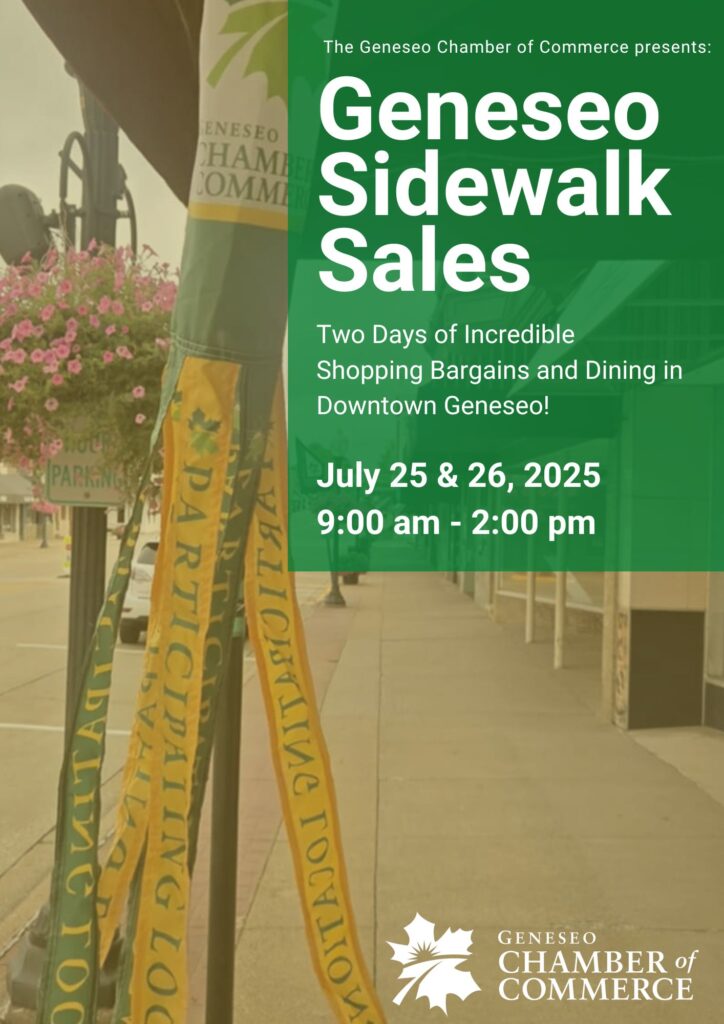 You don’t want to miss the incredible bargains during Geneseo‘s Sidewalk Sale, Friday and Saturday July 25 & 26, 2025!