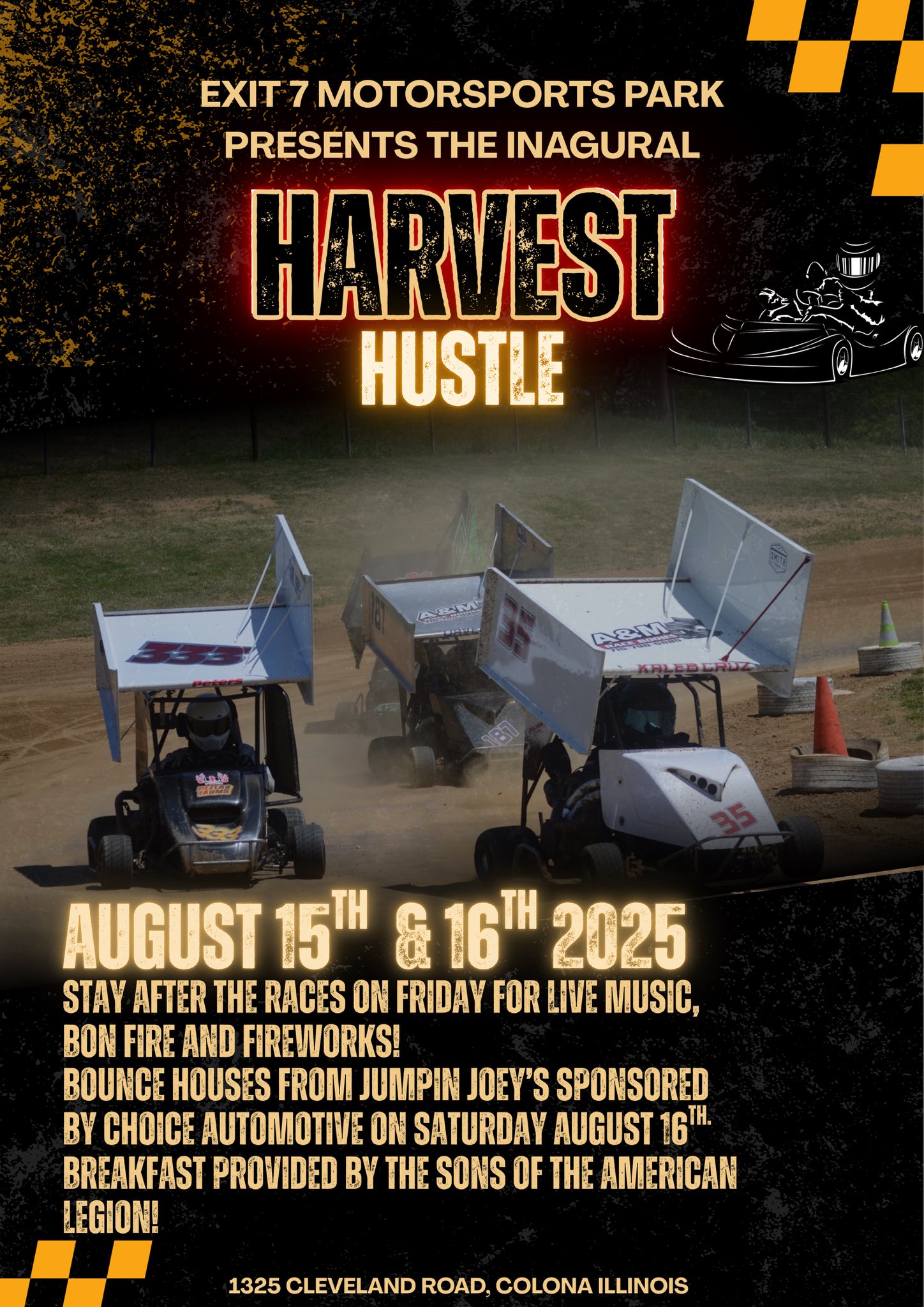 Come and race but stay for the party!! After the races we will have a live band, bon fire, and family fun, and fireworks! Camping available for the 2 day special. Both days are separate events but the over all points winner from both days of the Harvest Hustle will win the “Golden Cob”!