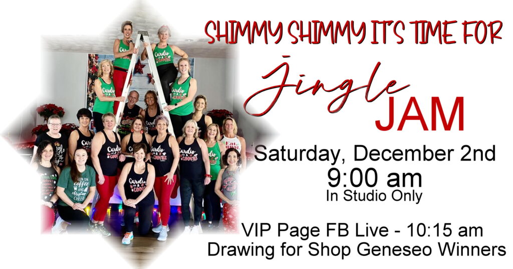 Beginning with our Thanksgiving class and each class you attend class through Jingle Jam be sure to enter your name in our drawing for 20 – $25 Geneseo Chamber Gift Cards.Â