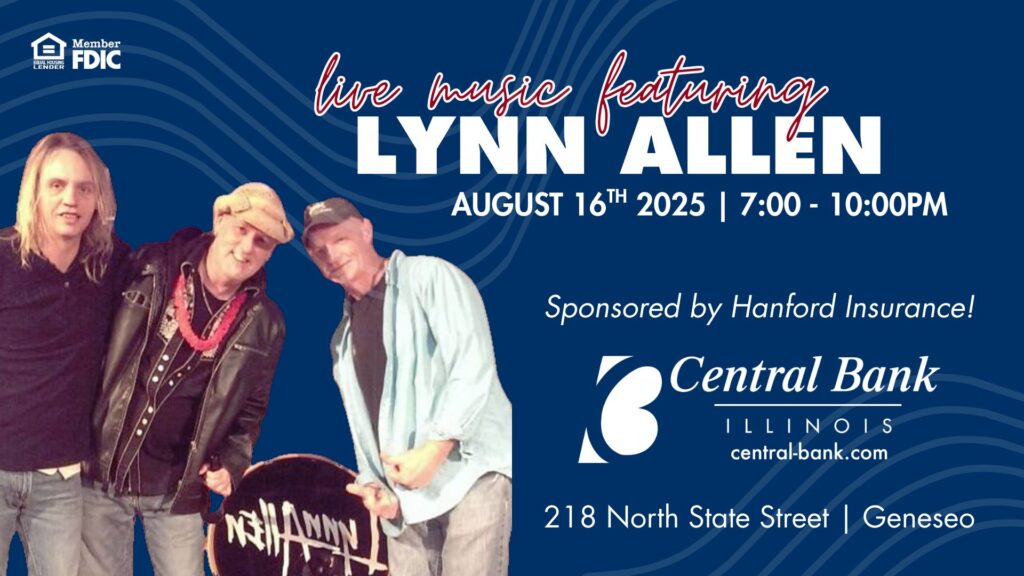 Come check out Lynn Allen August 16th at the Central Bank Pavilion! A night full of Rock N Roll from 7-10 PM sponsored by Hanford Insurance!