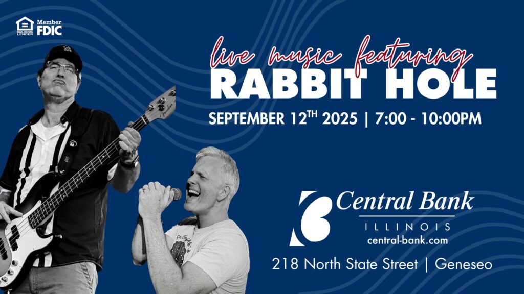 Head out to the Central Bank Pavilion Saturday, September 12th at 7:00 PM to jam out to Rabbit Hole, the Band! Bring your friends to experience danceable rock and pop from 5 decades!