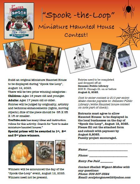 Spook the Loop is made possible thank to the efforts of Geneseo Shoot the Loop, the Geneseo Public Library District, and Sheilah Wigant-McGee Originals.