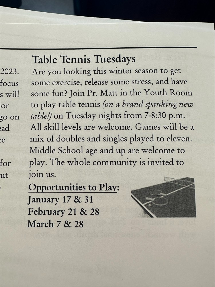 Join us for Table Tennis Tuesdays at First Lutheran Church!