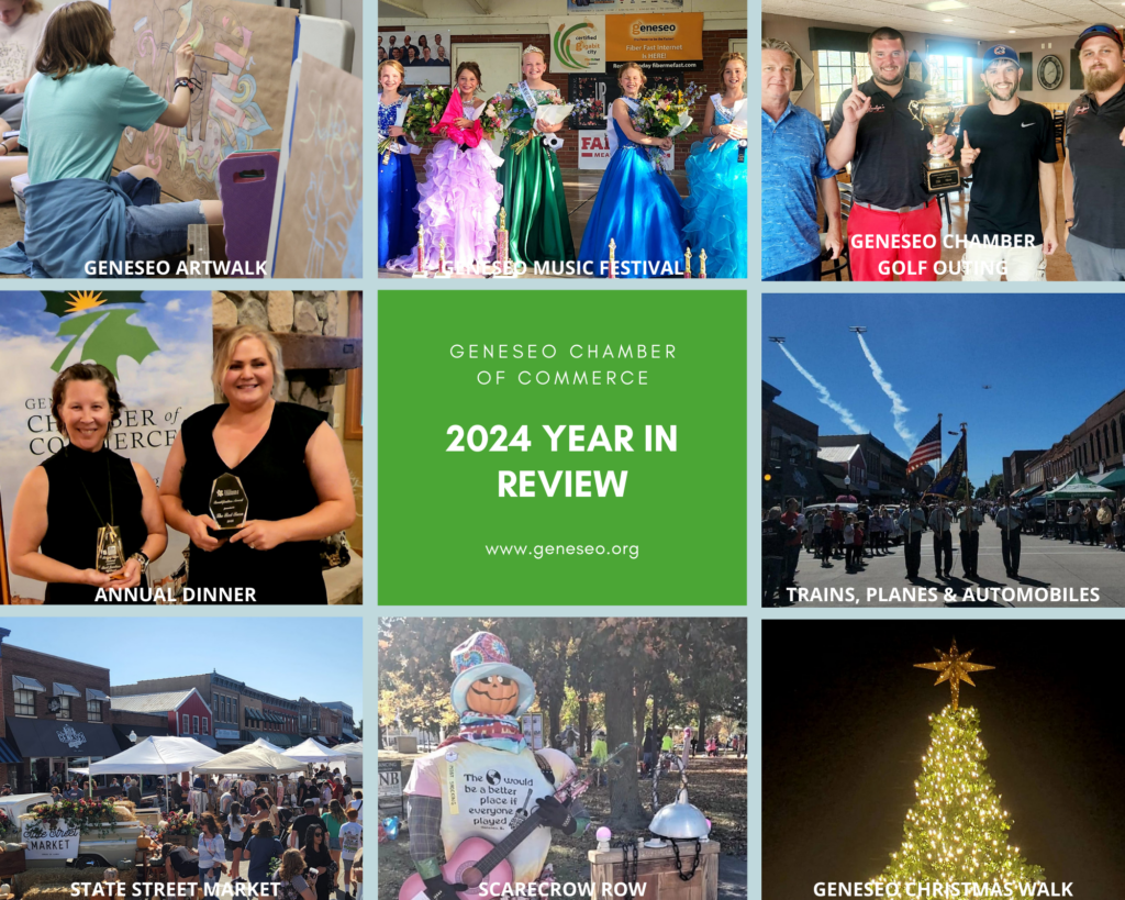 Support Community Events: Your membership supports the community events you and your employees love to attend, including Geneseo Artwalk, the Geneseo Music Festival, Scarecrow Row, and the famous Geneseo Christmas Walk! Our signature community events also provide a measurable economic benefit to every business in Geneseo. In 2024, the Geneseo Chamber’s signature community events attracted over 36,000 attendees.